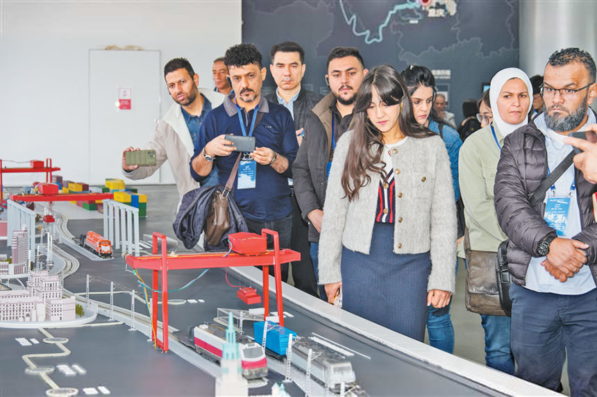11月4日,“你好重慶·發現城市魅力”中阿媒體采風活動舉行?;顒邮渍?,40余名來自阿拉伯國家的媒體人走進重慶國際物流樞紐展示中心,深入感受重慶積極參與“一帶一路”建設所取得的成就?!?/p>