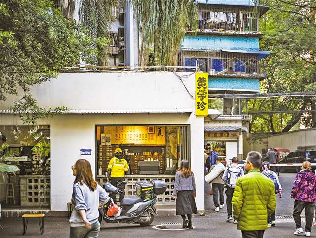 11月4日,沙坪壩區小龍坎街道嘉新社區,居民、外賣小哥在社區咖啡店取餐。 據介紹,小龍坎街道嘉新社區超八成樓棟建成已超20年,社區老齡人口占比超三分之一?!?/p>