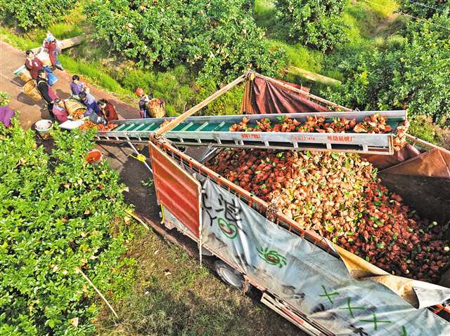 11月4日,潼南區柏梓鎮羊堡村,果農在采收成熟的檸檬。 眼下,潼南區32萬畝檸檬進入采收旺季?!?/p>