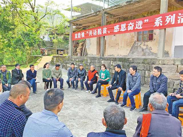 4月26日,豐都縣雙路鎮楠木村一個院壩里,老少村民圍坐成一個圈,一場“共話脫貧、感恩奮進”的群眾院壩會就此舉行。村黨總支書記張雪飛在簡單的開場白之后,就找了個塑料凳坐進“圈”里,拿出紙筆,準備記錄村民們的發言。