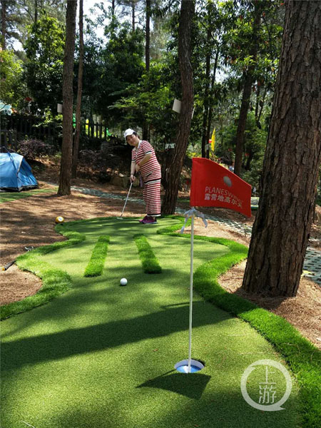 位于渝北玉峰山的客樂得房車營地,這個假期也迎來了小高潮!拔覀冞@里可以玩飛躍叢林、有智能CS,林下高爾夫、松果樂園等游玩項目,今年五一小長假,整個玉峰山人流量猛增,1—3號,餐飲和住宿幾乎都爆滿,大部分客人都是家庭帶孩子前來游玩!