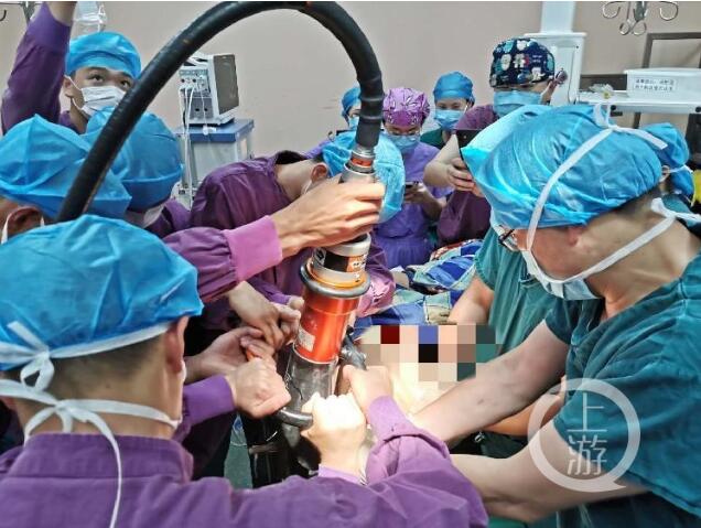 鋼筋刺穿身體 消防員舉著"鉗子"進手術室幫忙