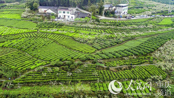 三合鎮萬畝茶葉基地梨花飄香。璧山區委宣傳部供圖