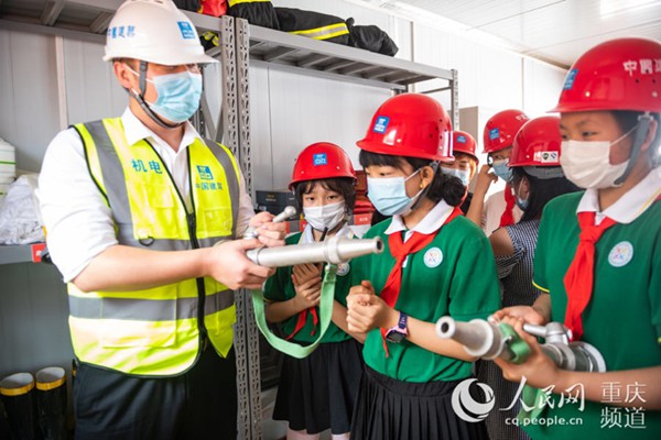 圖說:小學生走進軌道工地零距離感受重慶軌道交通建設。鄒樂攝