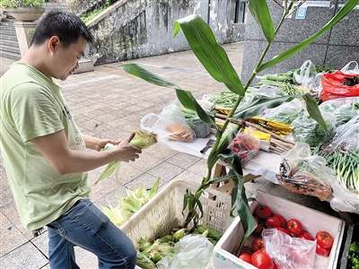“苞谷是今早剛掰回來的,甜得很,要不要來幾個?”5月31日一大早,36歲的馬華和妻子王云娟就開始在自己的菜攤前忙碌,前來買菜的,都是小區里的老熟人。
