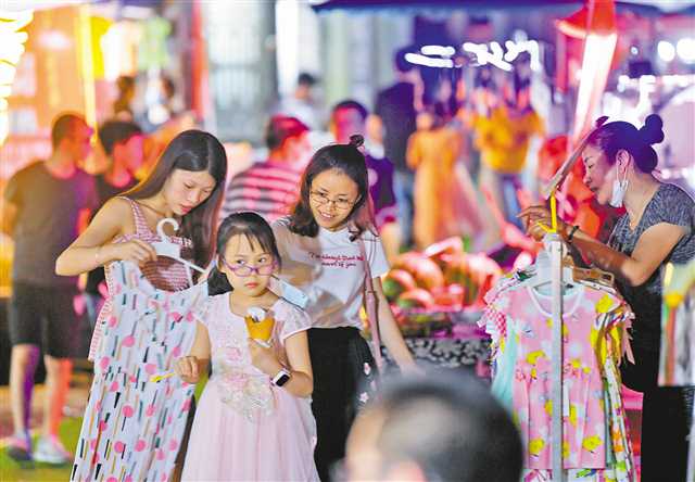5月31日,南岸區重慶映像老街夜市,家長在給孩子挑選連衣裙。