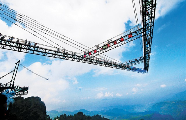 6月25日,萬盛經開區黑山之巔的夢幻奧陶紀主題公園,驚險刺激、步步驚心的云端廊橋,吸引了眾多游客體驗。特約攝影 曹永龍/視覺重慶