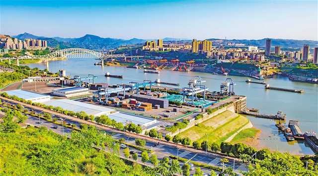 近日,萬州江南集裝箱碼頭船來船往。萬州區不斷推進鐵水聯運新模式,助力成渝地區雙城經濟圈建設,讓周邊地區的貨物通江達海。