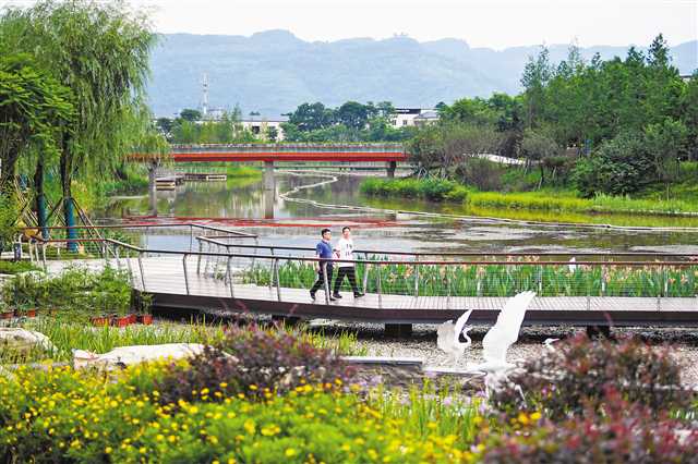 7月9日,南岸區茶園新區苦竹溪河畔,生態優美的自然景觀讓經過的市民心曠神怡。