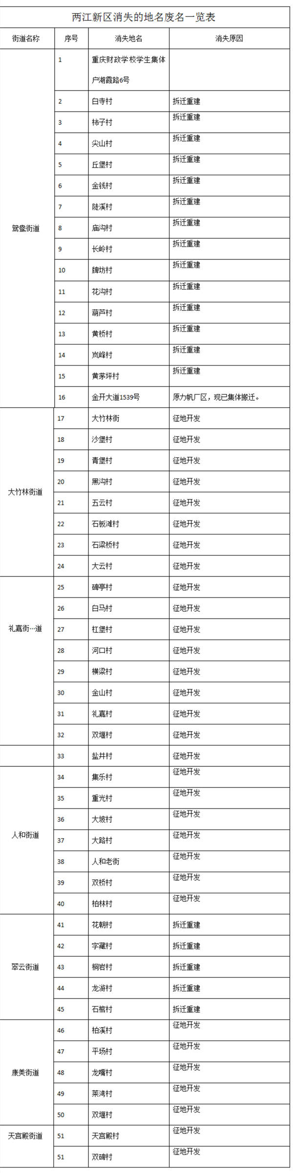 兩江新區這些消失廢名地址戶口人員注意啦!8月10日前要辦理遷移。