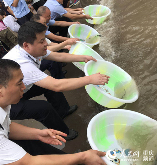 2014年4月,江津漁政人員到油溪鎮老洼沱碼頭增殖放流。