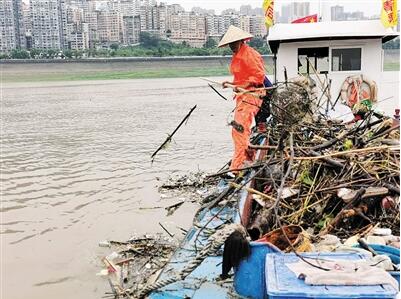 “今年入汛至今(4-7月),忠縣累計出動清漂船舶3872艘次,出動打撈作業人員7569人次,打撈長江主干流水域垃圾2184噸,支流水域垃圾2887噸!倍喢髡f,每位清漂人的辛苦付出都是為了讓忠縣長江段水域更干凈整潔,讓人們每天都能看見綠水青山、藍天白云。