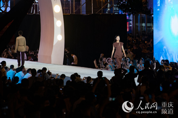 “時尚之夜”為主題的T臺秀在解放碑上演。鄒樂攝