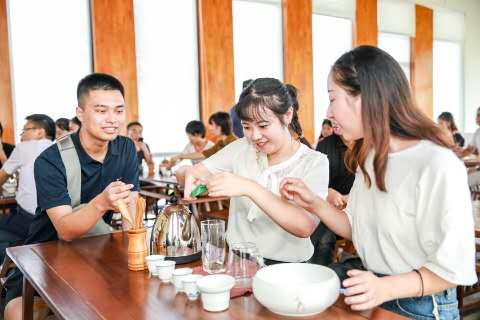 茶,素來被古人視為堅貞,愛情的象征,本次活動圍繞七夕和茶文化主題展開,活動在主持人激情洋溢的開場白中拉開序幕,在嘉賓破冰游戲中逐漸升溫。上午嘉賓們通過盲抽茶包進行初次緣分配對,一同攜手前往茶山進行采茶,隨后在炒茶師傅的帶領下一同體驗炒茶制茶。嘉賓們分組共同完成了殺青、揉捻和干燥等步驟,在過程中體驗了炒茶技藝,也相互了解,增進友誼。