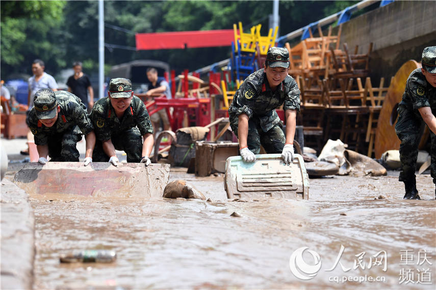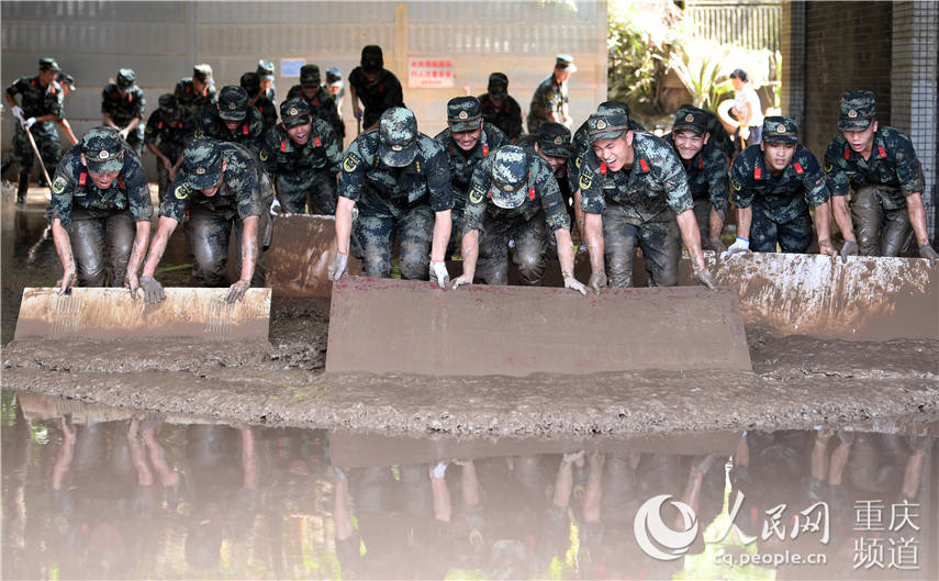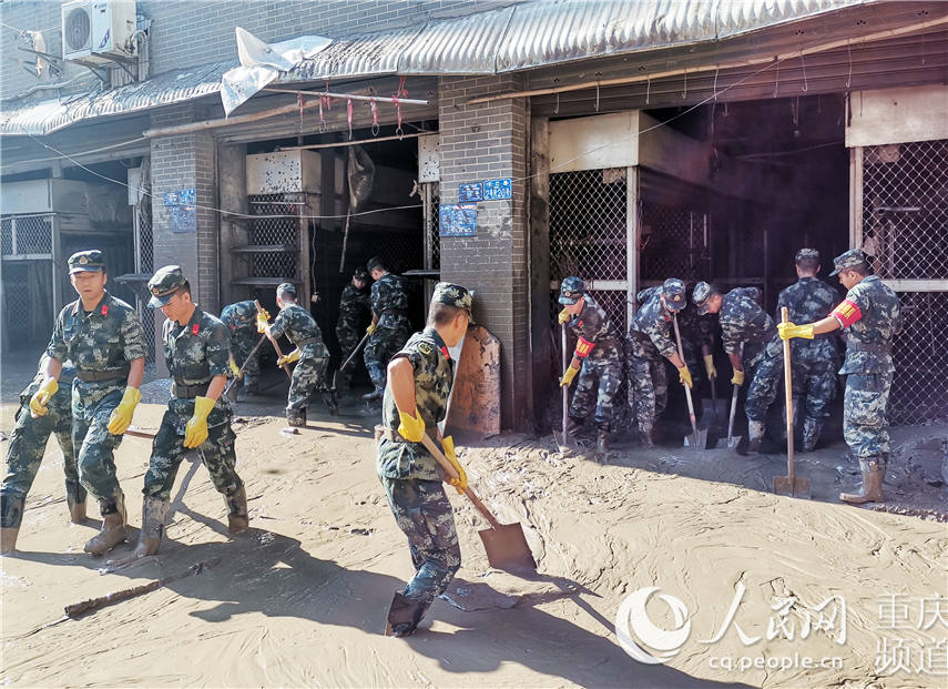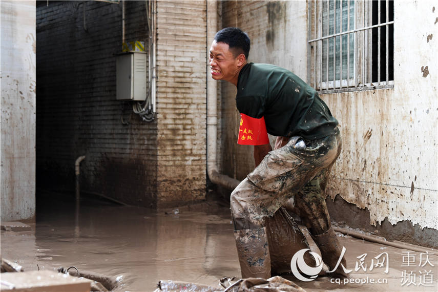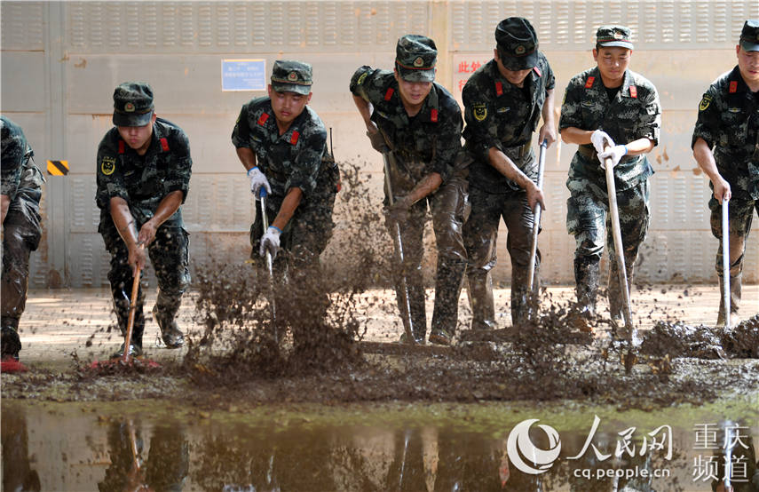 圖為武警重慶市總隊執勤第一支隊勤務保障大隊官兵清淤現場。郭傳伍攝