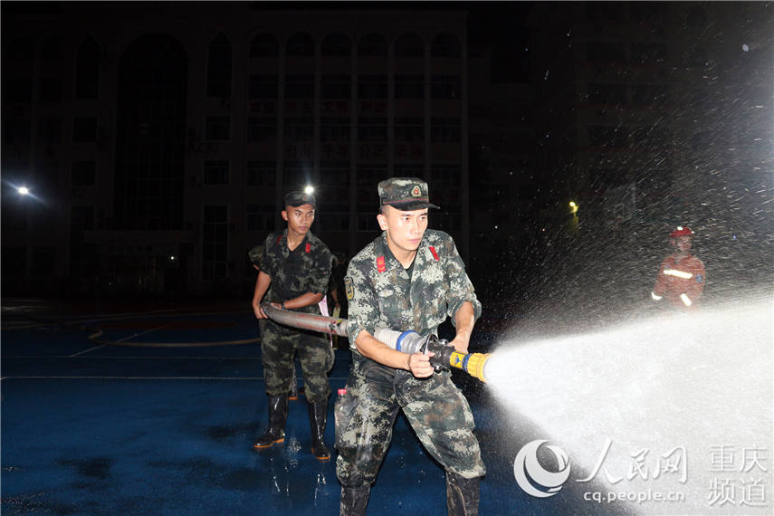 災情發生前,重慶市長壽區水位持續上漲,長壽二中受災嚴重,大量淤泥、垃圾堵塞操場、教學樓,給學校帶來了極大不便。執勤第一支隊執勤六大隊官兵攜鐵鍬、防割手套、鍬鎬等工具第一時間趕往現場分成多個小組,配合學校工作人員展開清淤工作。