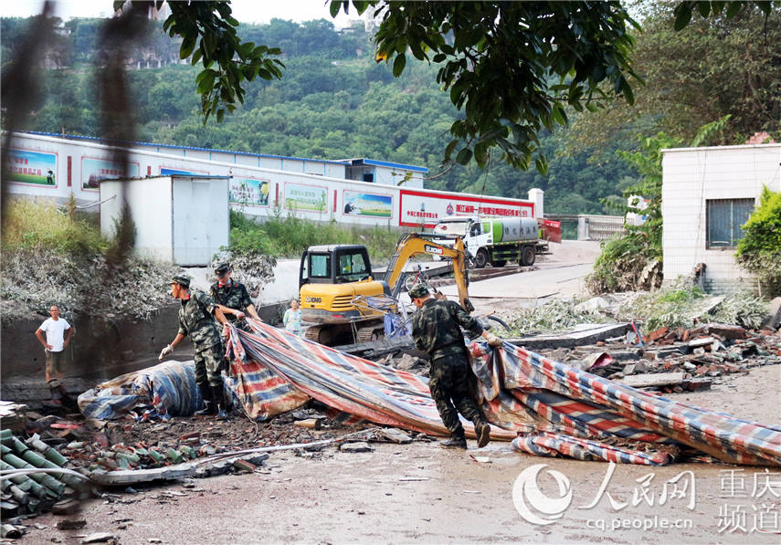武警重慶市總隊執勤第一支隊執勤四大隊官兵清淤任務現場。郭傳伍攝