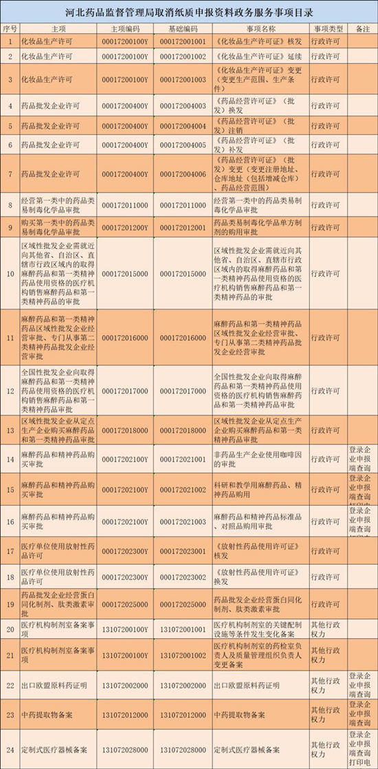 河北省藥監局取消24項政務服務事項紙質申報資料