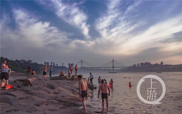 滑石灘游泳隊從成立到現在已有四年,幾乎每天都有隊員到江邊游泳,他們見證了大濱路越變越美的過程,見證了大濱路邊每日絢爛的朝霞。
