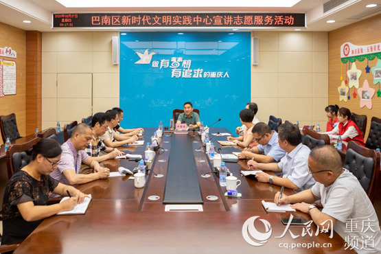 巴南區委書記辛國榮為廣大志愿者開展宣講。何洲行攝