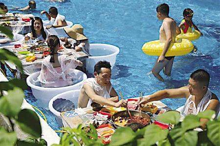繼水上麻將之后,重慶人又玩出新花樣。28日,重慶高溫持續,重慶一景區卻推出“水上火鍋”讓游客體驗。該新聞上了微博熱搜榜,閱讀超過2億人次,近萬人參與討論。