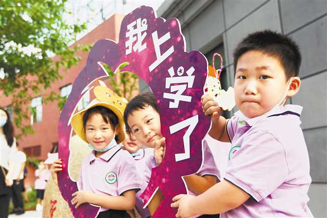 8月30日,江北區玉帶山小學新校區,一年級新生報到。記者 盧越 攝/視覺重慶
