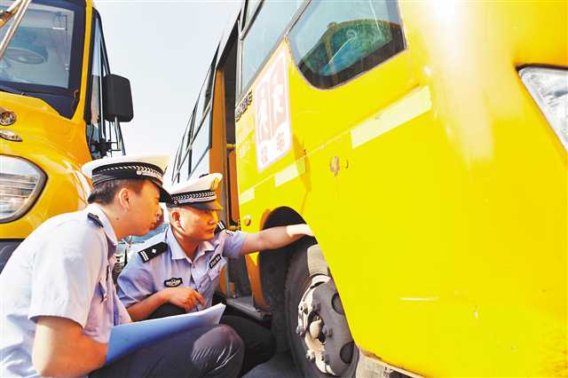 8月27日,永川區對全區校車集中進行安全隱患大排查。特約攝影 陳仕川/視覺重慶