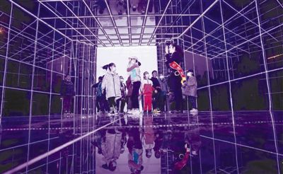 貴州省畢節市科技館,小朋友們在科普志愿者的帶領下參觀“投影星空場景”科普項目。