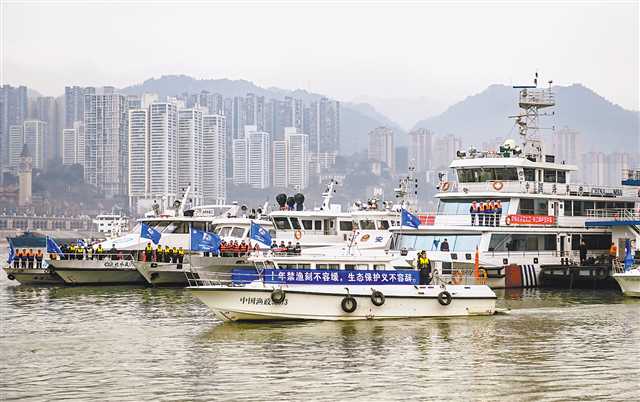 本報訊 (記者 趙偉平)伴隨著執法船隊開展聯合巡江的鳴笛聲,重慶市內長江流域重點水域歷時10年的全面禁捕正式啟動。2020年12月31日,由重慶市人民政府主辦,重慶市長江禁捕退捕工作領導小組辦公室、江北區人民政府承辦的長江流域重點水域十年禁漁全面啟動活動(重慶分會場)在江北嘴執法船舶碼頭舉行。