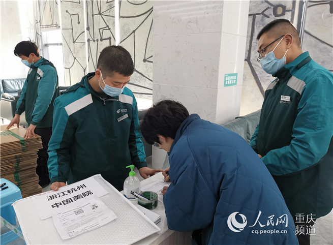 人民網重慶1月15日電(陳琦)“因為疫情,今年藝考跟以往有所不同,還好有郵政幫忙寄遞試卷,很省心!15日中午,在大學城重慶遠倫教育培訓學校網絡藝考點,第一個交卷的考生王岑霖將試卷密封后,遞給了現場的郵政工作人員。