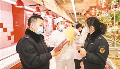 近期,河北省邯鄲市廣平縣市場監管部門加強監督抽查和執法檢查,凈化節日市場消費環境。圖為日前,廣平縣市場監管局廣源分局執法人員在超市對肉類食品專柜進行執法檢查。