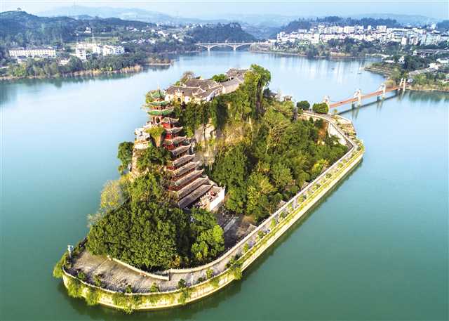 石寶鎮除忠文化公園外,還新建起一座旅游休閑公園。在這座面積達3萬平方米的公園里,正在逐步完善相關的景觀景點。站在已經建好的觀景亭,可以觀賞到江上的大盆景石寶寨全貌和江對岸的西沱古鎮。