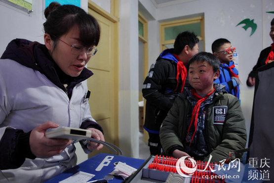 人民網重慶1月19日電 1月17日,千葉眼鏡送光明公益行動走進豐都,為位于高寒凝凍山區的都督鄉中心學校師生進行了義務視力檢測,并為有需要矯正視力的師生們免費贈送了價值五萬余元的眼鏡。