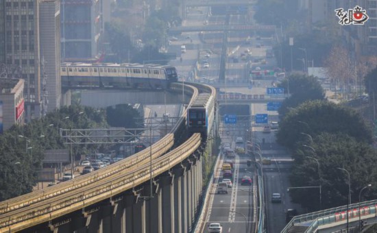 登上唐家院子站扶梯頂端,可以看到熱門打卡拍攝點。在這里,單軌列車“急轉彎”與公路的高架、下穿道和一座座人行天橋共同組成重慶現代立體交通縮影。