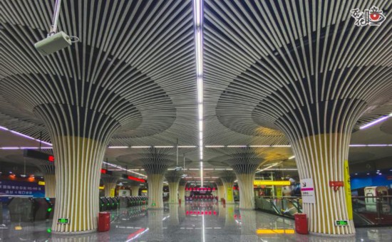 【童話】——地鐵國博線國博中心站,前不久因站廳柱子裝飾風格像“蘑菇”而意外走紅,登上微博熱搜,該站被網友形容為“蘑菇叢林”。
