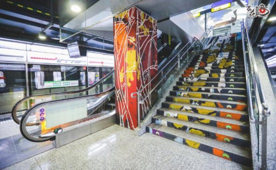 【熱烈】——走進地鐵1號線烈士墓站,映入眼簾的便是國內最大的站內涂鴉,熱烈而奔放的色彩,將墻壁、階梯裝點得絢爛繽紛,讓人感受到生命的力量。