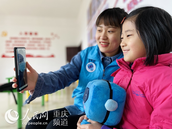 在“話”思念的游戲環節中,志愿者們來到家在墊江縣的許婧妮小朋友家中。今年,許婧妮的父母選擇堅守工地,無法與她團聚,“臨時媽媽” 通過手機讓許婧妮與在外務工的父母進行了視頻對話。