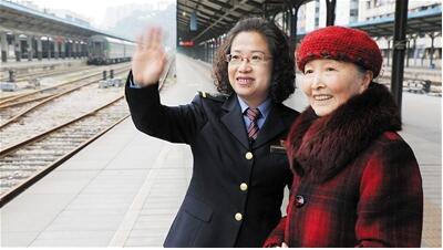 高曉軍陪伴母親高麗看菜園壩火車站