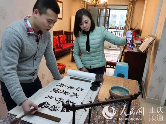 人民網重慶2月5日電 “立鴻鵠志、修文武身、懷忠孝義、專一心事”。5日下午,一場云端上的家庭年會在巴南區李家沱董婷婷家進行。董婷婷手舉手機,丈夫邊書寫16字家訓,邊通過視頻向遠在東北的兩個女兒耐心講解。近日,巴南區正式啟動2021年“佳節話家風·和美家年會”活動,號召全區黨員干部和群眾通過“講家史、立家訓、說得失、談夢想、傳家禮、送祝!钡刃问介_展家庭年會活動,共同傳承優良家風。