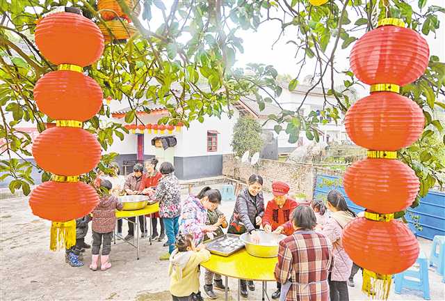 2月8日,渝北區興隆鎮徐堡村,村民們在院壩里包湯圓,熱熱鬧鬧迎新春。 記者 萬難 攝/視覺重慶