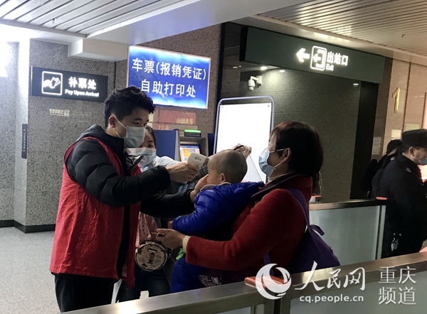 志愿者為旅客量體溫。共青團重慶市委供圖