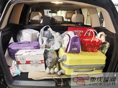 媽媽為何樂知準備的各種年貨塞滿了后備廂。