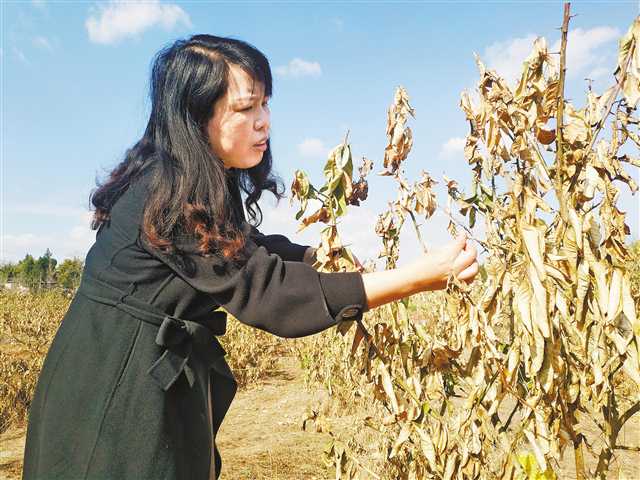 黃琳在地里查看佛手樹的災情。記者 陳國棟 攝\視覺重慶