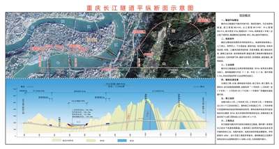 全長11.9公里,最大埋深330米,隧道頂距江底最低12米 隧道從菜園壩火車站起始,止于茶園新區花田咀村附近 下穿市政道橋、軌道交通線路、長江河谷、南山山體……