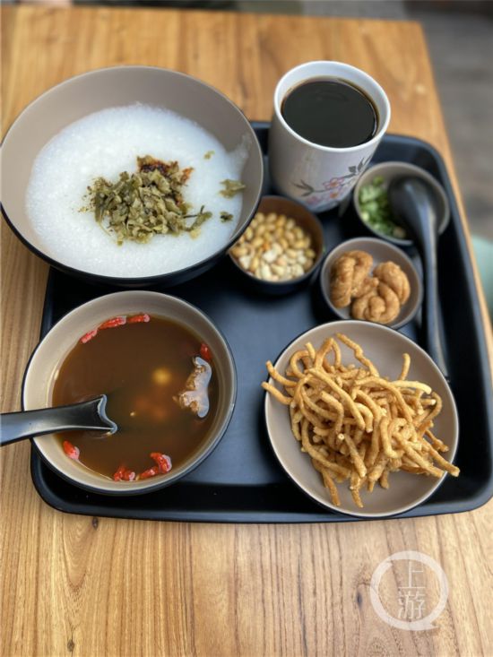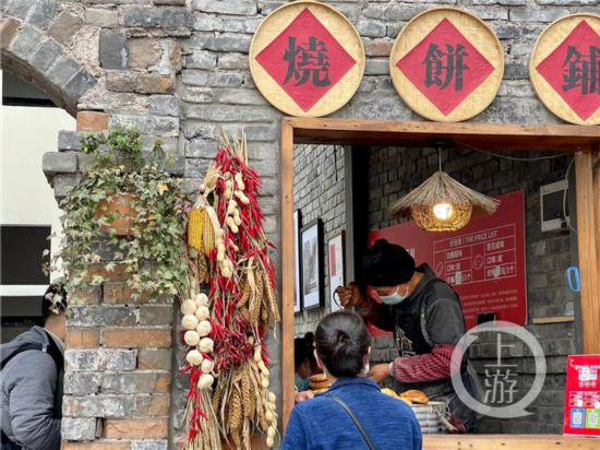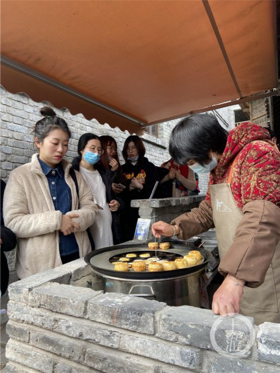 2月17日下午,小長假最后一天,家住大渡口的袁先生帶著老母親和妻子、女兒來逛山城巷,四個人要了兩個油茶套餐!案杏X山城巷變了,好像又沒變。變得更好看了,但還是保留了老味道!痹壬嬖V上游新聞·重慶晨報記者說,“比如這個油茶,本來就是重慶特色小吃。米糊是現熬的,吃起來有顆粒感,是小時候的味道。油辣子很香,馓子也酥脆!痹壬哪赣H吃下了一整碗紅糖小湯圓,她說:“以前每天能吃到的小吃,現在吃一次都好像成了一件奢侈的事情。在這里能找到回憶,以后要多來轉轉!
