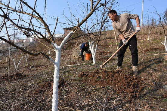 廟宇鎮水磨村果農對脆李進行施肥。 王忠虎攝
