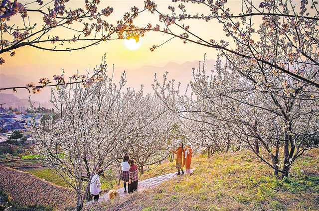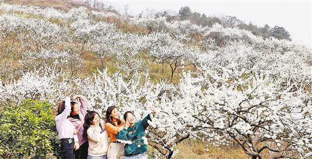 近年來,巫山縣以櫻桃、脆李、柑橘等特色水果產業為依托,結合鄉村旅游大力發展“花經濟”,打造出“春季月月可賞花”的三峽“花!!2月可賞櫻桃花,3月恰逢李花盛開,緊接著4、5月三峽兩岸的柑橘又將次第開花,整個春天,巫山都將是一片花的海洋!蔽咨娇h農業農村委副主任劉紅介紹說。