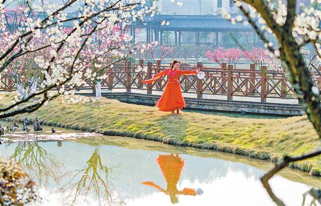 入春以來,忠縣黃金鎮“花田溪谷”,一眼望不到邊的梅花為青山披上了一襲飄逸的紅裙。