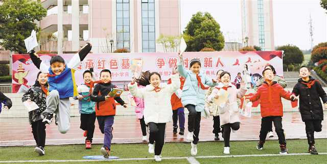 2月28日,永川區興龍湖小學學生開心地走進校園報到。學生們有序地領取新課本、接受安全教育、排練開學典禮節目,寧靜的校園又熱鬧起來。特約攝影 陳仕川/視覺重慶