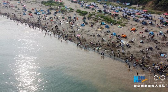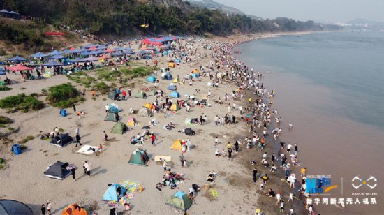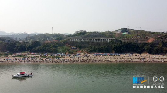 這是一片緊鄰長江的優質沙灘,沙灘岸線長約800米,面積約40畝。這里水好、岸綠、沙軟,短短幾天時間,吸引超過十萬人次前來打卡。新華網 馬天龍 攝